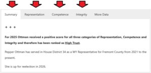 We do not claim that our Trust Ranking System is perfect. We review a great deal of publicly available data and records and make determinations to the best of our ability, and as objectively as possible. Ultimately everything is compared to a legislator upholding their Oath of Office. We believe this is critical information that every Wyomingite should have access to every day of the year, and not just during election seasons.