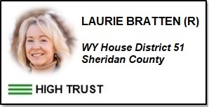 Laurie Bratten was elected in 2024 as Representative for House District 51 in Sheridan County. She ran unopposed in both primary and general elections to replace Cyrus Western who did not seek re-election.